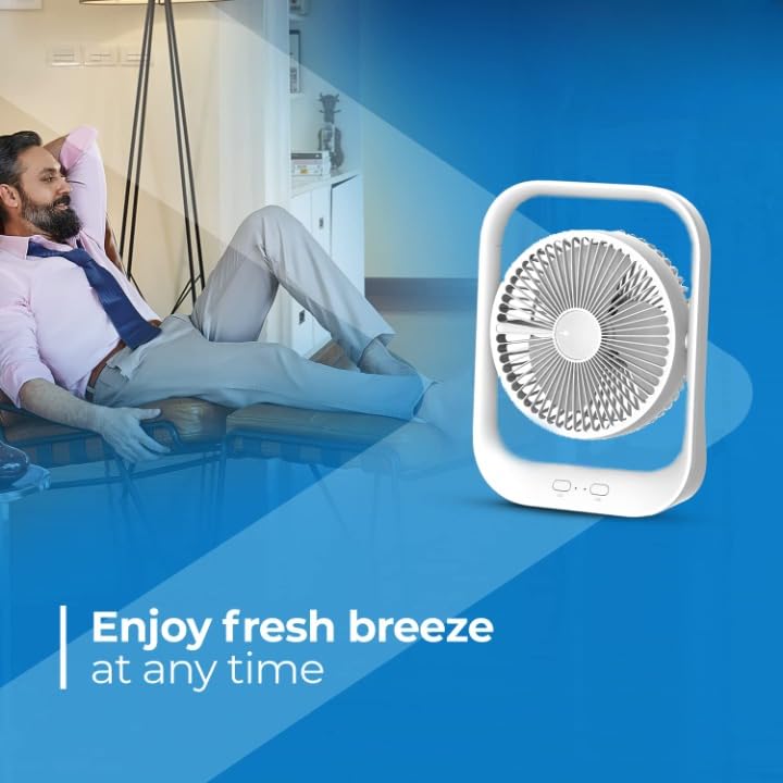 Bajaj's Pygmy 178mm USB Charging LED Light 2100 RPM High-Speed Rechargeable White Portable Fan for Home & Office