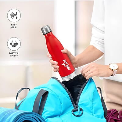 - Color: Red; Material: Stainless Steel; Package Content: 1 - Piece Shine Stainless Steel Water Bottle (900 ml); Dimension in cms (L x W x H): 7.35 x 7.35 x 30
